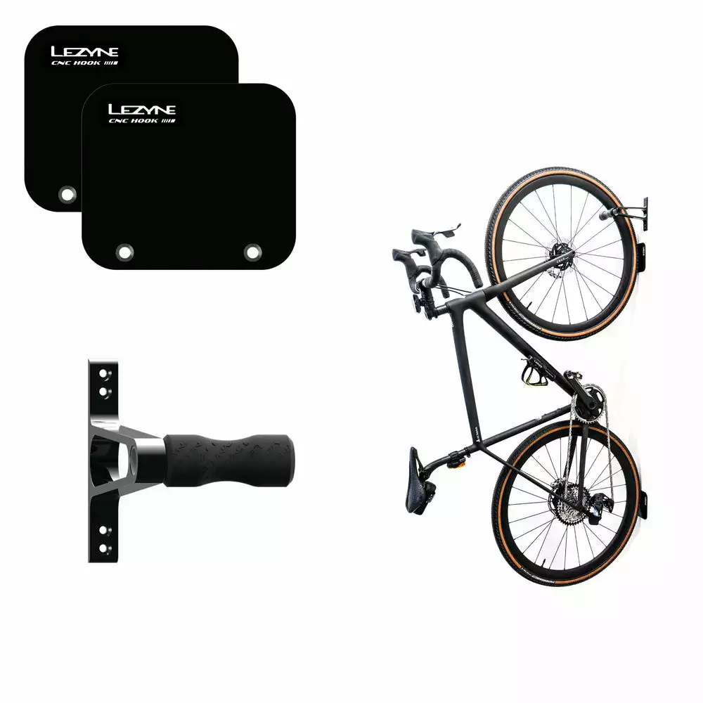 Lezyne has designed a modern, industrial 3-piece bicycle storage system constructed from a durable CNC-machined aluminum. This includes a stylish wall-mounted wheel hook and two tyre plates to prevent scuffing. The wheel hook features a rugged, anti-slip cover that secures the bike and safeguards its rim. A one-time installation allows for simple, space-saving bicycle storage for indoor spaces, garages, or wherever you prefer to hang your bike. It’s compatible with all standard bicycles—from BMX to downhill bikes—and can hold up to 32 kgs. Mounting hardware included.